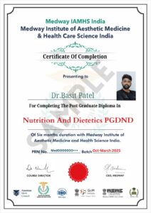 The Post Graduate Diploma in Nutrition and Dietetics (PGDND) offered by Medway Iamhs India is a comprehensive online course designed to equip students with advanced knowledge and skills in the field of nutrition and dietetics. This program is ideal for healthcare professionals, dietitians, and anyone interested in advancing their career in nutritional science. The course covers a wide range of topics, including clinical nutrition, public health nutrition, therapeutic diets, and the latest research in dietetics. With a blend of theoretical knowledge and practical application, the PGDND course ensures that graduates are well-prepared to meet the demands of the nutrition and wellness industry.