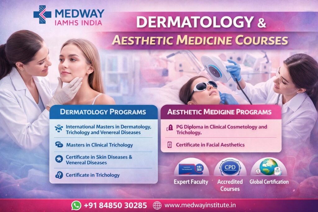 Medway IAMHS India offers a wide range of structured programs designed to help healthcare professionals gain clinical excellence in dermatology, trichology, cosmetology, and aesthetic medicine.