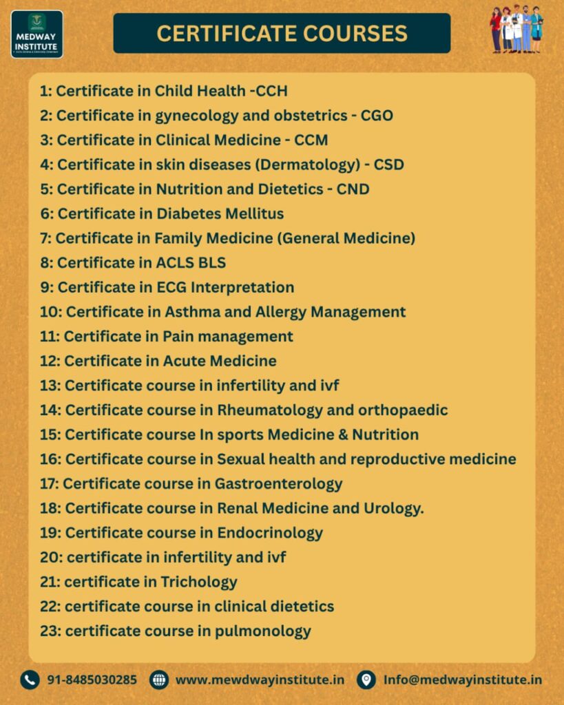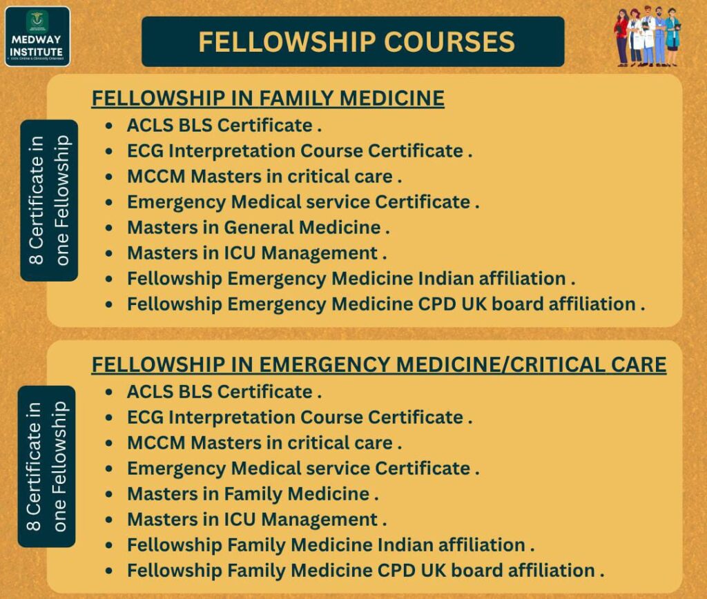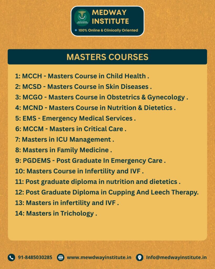 Medway offers programs under Certificate Courses, Master Courses, Fellowship Programs, Diploma & PG Diploma Programs, and Advanced Doctorate-Level Courses.